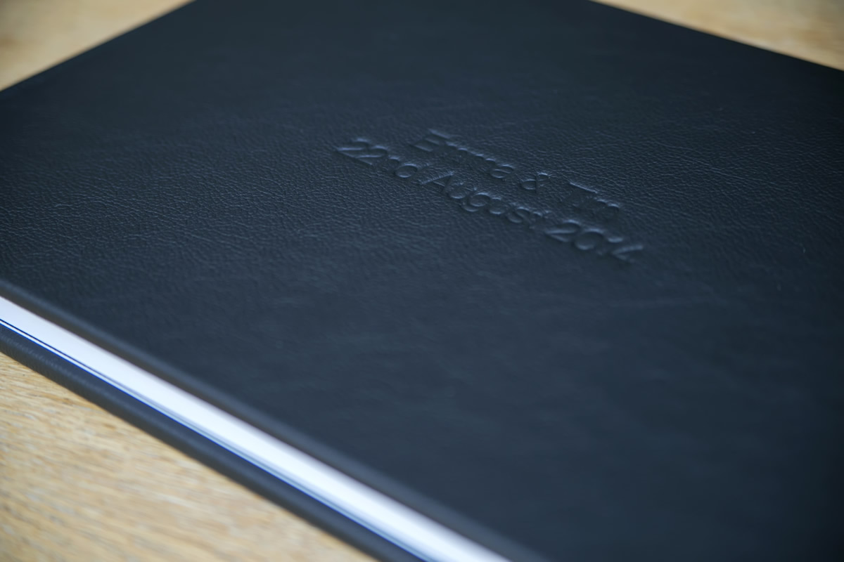 images from your wedding day. The Italian leather cover is available in a wide range of colours,
